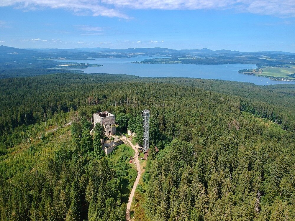 Nejstarší kamenná rozhledna v ČR stojí na vrcholu hory Kleť.
