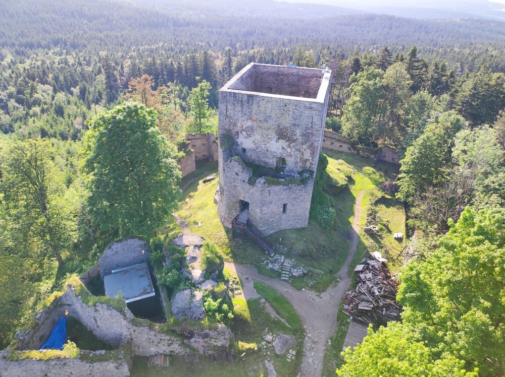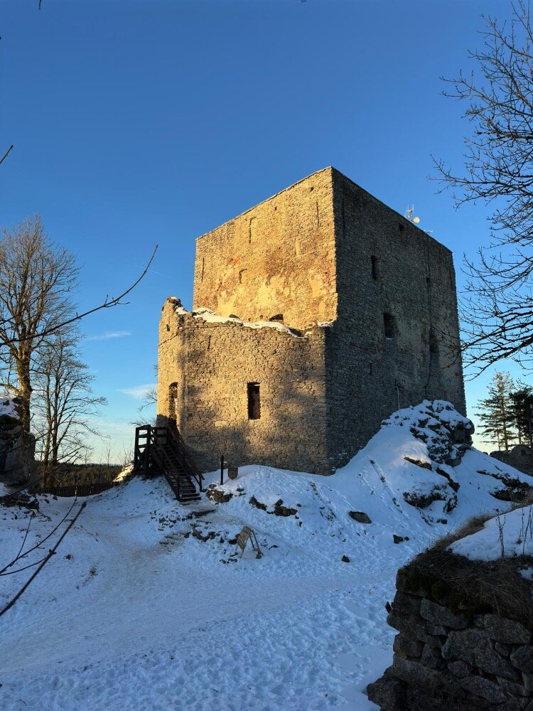 Romantický strážní hrádek v 1035 m n.m., což z něj činí nejvýše položenou hradní zříceninu v ČR.